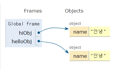 객체를 변수에 저장하면 객체 리터럴 자체가 저장되는 것이 아니라 reference 즉, 메모리의 주소가 저장된다.