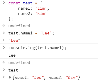 객체에 이미 키가 존재하는데, 다시 한 번 할당하면 값이 교체(수정)된다.